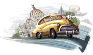 Alatriste llevó a Deifilia en el Taunus de Changoleón por las calles oscuras de aquella ciudad en la que apenas había coches por las noches, a diferencia de las mañanas, donde convivían los coches de marca Oldsmobile y Nash y Packard y desde luego los Ford y los Chevrolet y los incipientes Citroën y los imponentes trolebuses que apartaban de su carril a sus competidores en la mañana y llenaban el silencio de las noches con un rumor vibrante. Los trolebuses cruzaban desde temprano la ciudad helada de entonces que empezaba su vida antes del alba con mujeres barriendo y baldeando sus banquetas, y terminaba al caer la noche cuando las dependientas de las tiendas salían de trabajar a las ocho y se iban a sus casas con un doble sentimiento de libertad y de tristeza, pues venían de su libertad laboral, de las tiendas donde trabajaban, de sus mostradores suntuosos y sus pasillos radiantes de luces, pero volvían al caer la noche, modernas cenicientas, a sus tugurios familiares, sus cuartos hacinados, sus casas amarillas, sus tercerías de vecindad, todos nidos precarios que apenas se atrevían, socialmente, a decir su nombre: volvían a ser las hijas cautivas de sus casas luego de ser las hijas libres de la ciudad.